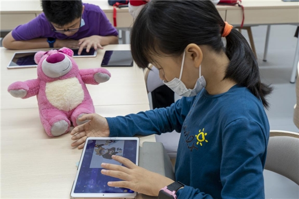 课堂上,刘明一拿到平板电脑就非常熟练的打开了,他通过拖动屏幕上的一个个图形积木,顺利实现了“小火箭升空”,那一瞬间,他脸上难掩开心的表情。