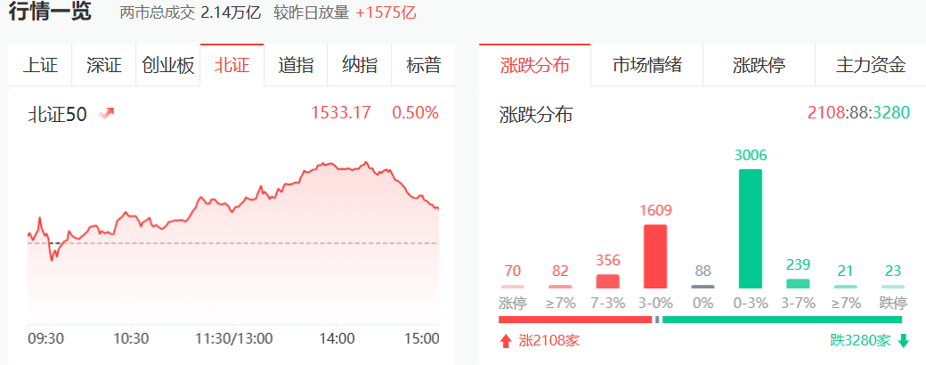 好了,说一下盘面的情况。今天市场涨跌还是不太如意,虽然5大指数都是上涨的,但有3300个票下跌,只有2100个票上涨,虽然不算很极端,但终究不算普涨,70个涨停、23个跌停,其实跌停数量还是稍微多了一点可以玩的小火箭游戏软件。这两天我也提到节前倒数第二三天,市场抛压会稍微大一点,昨天和今天也看到这样的特征,不过主力资金也就跑了70多亿,也不算很突出,两市放量1600亿,昨天跌破了2万亿,今天又回归到2.14万亿。
