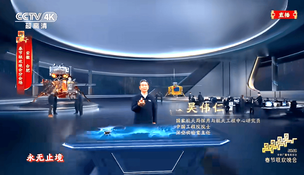 在总台春晚合肥分会场的舞台上,有一个名字与安徽的深空探索紧紧相连——他就是中国工程院院士、深空探测实验室主任吴伟仁。