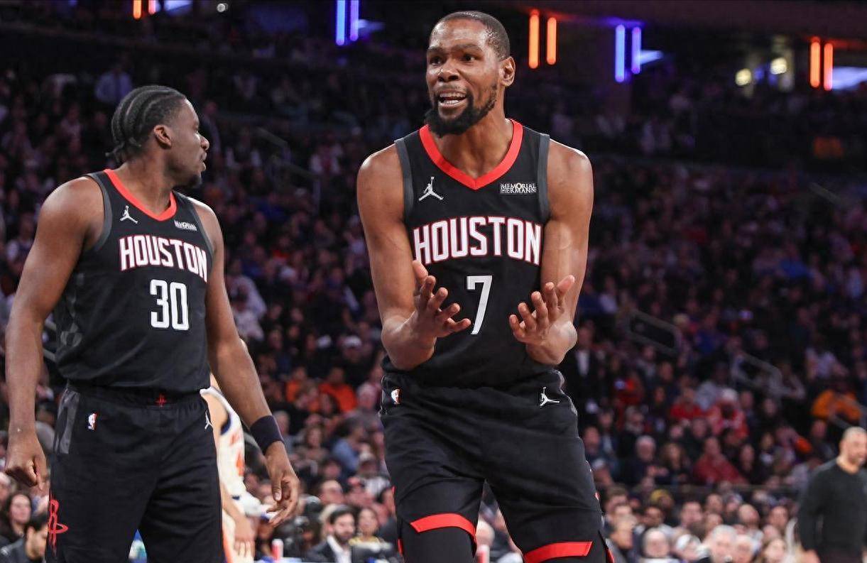 火箭近期的处境并不乐观,就在2月22日,火箭客场挑战尼克斯,前三节还领先16分的情况下,末节突然崩盘,最终被对手逆转,遗憾输球。这场失利也暴露了火箭的诸多问题,全场19次失误,末节就占了8次,关键球能力严重不足,而且范弗利特和亚当斯两名主力已经赛季报销,内线和组织端都出现了明显短板。更麻烦的是,杜兰特小号事件引发的更衣室信任危机还未平息,教练组采取冷处理策略,但杜兰特曾在内部会议愤然离场,申京则在训练中用行动表达不满,两人的矛盾已经影响到了球队氛围。
