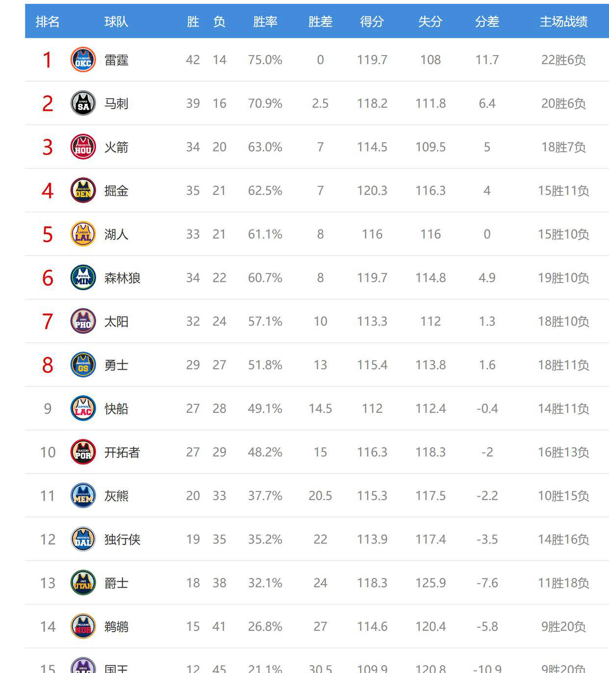 北京时间2026年2月20日,NBA并未停歇,今日迎来了多达10场激烈对决,包括火箭、快船、勇士、掘金、马刺、太阳和国王等劲旅悉数登场。赛后,西部联盟的排名格局发生了明显变化。