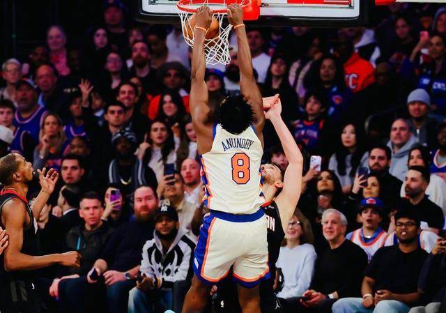 反观主场作战的尼克斯队,他们则充分展现了东部强队的风范。唐斯成为了尼克斯内线一道坚不可摧的屏障,他全场砍下25分,并抢下7个篮板,送出1次助攻和1次抢断,无论在进攻端还是防守端,都给火箭队带来了巨大的压力。外线方面,阿奴诺比的表现同样令人眼前一亮,他不仅得到了20分,还送出了4次抢断,其凶悍的防守给火箭队的锋线球员制造了不小的麻烦。球队的核心后卫布伦森也发挥稳定,拿下20分,外加3个篮板和6次助攻,他在比赛关键时刻的持球推进,有效稳定了球队的军心。布里奇斯贡献了11分,而哈特虽然得分不高仅有2分,但他同样贡献了6个篮板和6次助攻,默默地为球队的进攻串联贡献着自己的力量。
