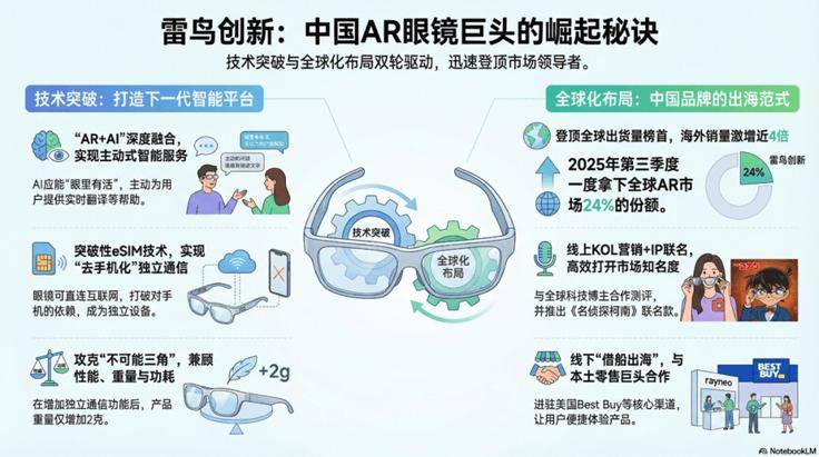 2025年第一季度,雷鸟创新在中国AR/AI拍摄眼镜线%。 在全球范围内,其产品已进入超过25个国家和地区,在美国、加拿大、日本等国家和地区市场份额稳居第一。