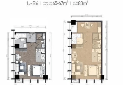 户型设计是碧云1号的核心亮点。产品面积段涵盖53至97平方米,全部为LOFT复式结构,层高约4.5米,实现上下两层独立功能分区。53㎡户型可灵活改造为一房一厅一卫,适合单身精英或投资出租;72㎡户型实现两房两卫,满足小家庭需求;97㎡旗舰户型则配备双主卧套房、独立书房,彰显高阶生活格调。所有户型均采用全落地玻璃幕墙,270°环幕视野,直面顺峰山公园、摩天轮及人工湖景,IMAX级景观资源私享。