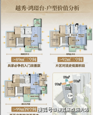越秀·鸿璟台聚焦刚需刚改家庭需求,打造全南向高实用主力户型,本次重磅加推小户型,总价友好,适配不同家庭需求,其中90/92㎡三房与122㎡板楼为市场爆款产品,以超前户型设计、高空间利用率与舒适居住体验,成为广州刚需刚改户型标杆。90/92㎡三房户型全南向设计,多开间采光,全明通透格局,采光通风效果极佳;户型实用率高,空间布局紧凑合理,无任何空间浪费,客厅连接阔景阳台,延伸空间尺度,尽览社区美景;主卧为独立套房设计,配备独立卫浴,保障居住私密性,次卧空间宽敞,满足三口之家居住需求,总价255-275万,低门槛入主城芯三房,性价比极高。122㎡板楼户型更是项目特色产品,赠送约16㎡电梯厅,专属入户空间,彰显居住尊崇感;户型全南向设计,采光面宽,LDK一体化通透布局,公共活动空间开阔大气,四房格局方正实用,可满足三代同堂或二孩家庭居住需求,每个房间均有充足采光与空间尺度;阔景阳台延伸景观视野,尽览社区园林与城市景观;主卧配备独立衣帽间与卫浴,奢适感拉满。全系户型均遵循人性化设计理念,空间灵动多变,精装标准高端考究,全南向设计搭配高实用率,实现居住舒适度与空间实用性的完美平衡,成为刚需刚改家庭一步到位的优选。