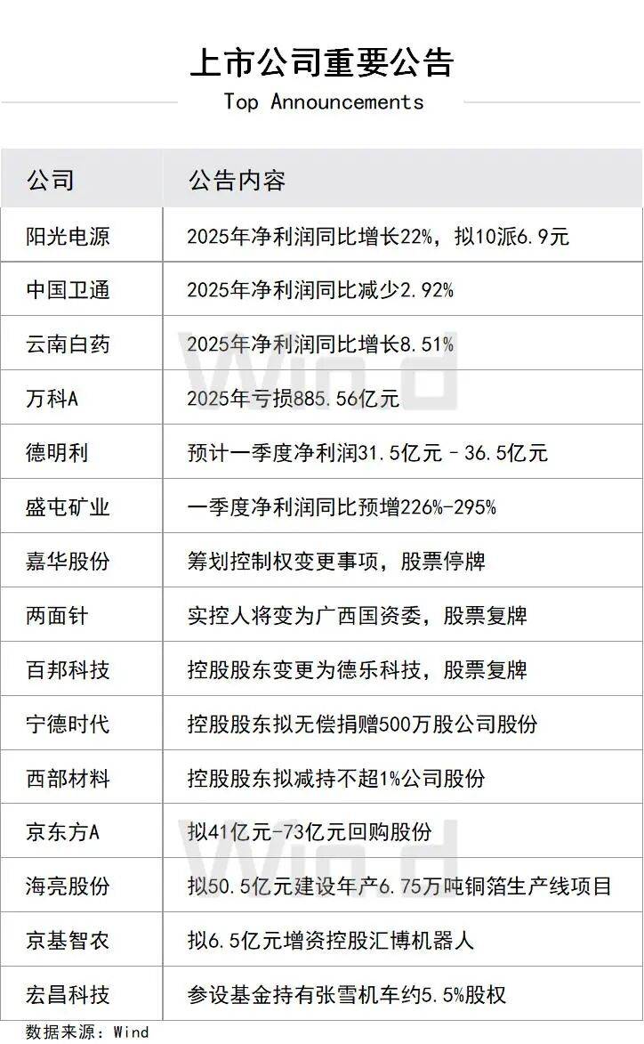 4、沪深北交易所公布2026年清明节休市安排:4月4日(星期六)至4月6日(星期一)休市,4月7日(星期二)起照常开市。此外,4月3日至4月7日不提供港股通服务,4月8日起照常开通港股通服务。