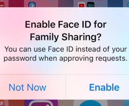 在即将到来的iOS 11.3版本更新中,苹果将允许拥有iPhone X的父母为他们的孩子或者其他家庭成员开通Face ID的面部生物识别,从而实现家庭购买。