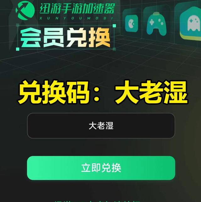 在迅游手游加速器个人中心找到口令兑换码,输入“大老湿”就可以获得迅游手游加速器的VIP时长,直接进行VIP加速游戏,体验感更好。