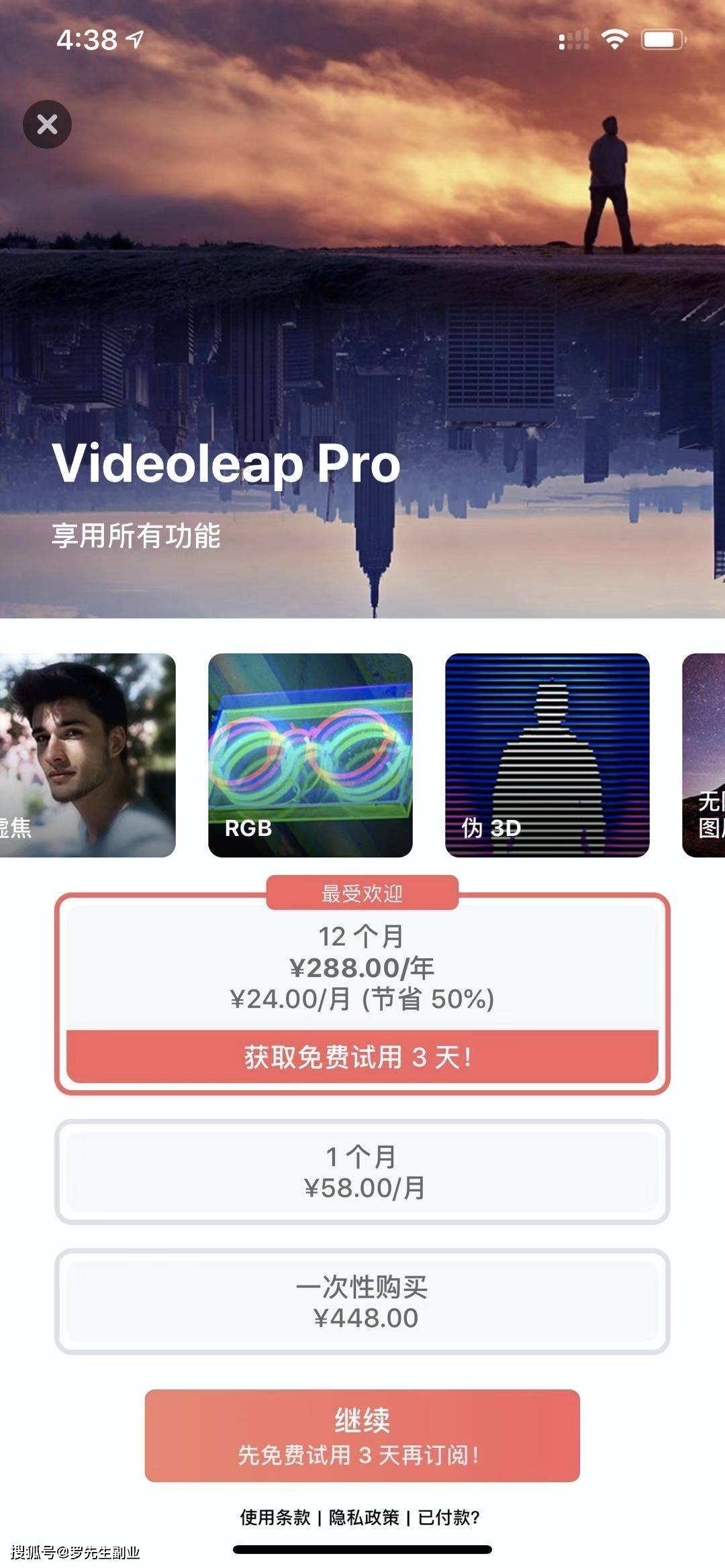 我们都知道,苹果手机只要ID一样,所有的付费软件都可以同步,他这个赚钱的原理就是,你购买了他的会员,登录他提供的苹果ID账号,然后下载这个软件,点击恢复会员就可以同步了,所以这个玩法我们也可以操作,买一个永久的会员,然后买一个二手的苹果机,就可以复制他的玩法做下去。