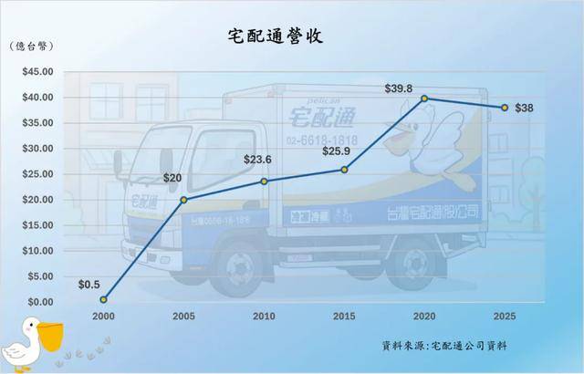 总结来看,中国台湾宅配双雄2025年间呈现截然不同的成长曲线。统一速达表现强劲,营收从2000年的几千万一路飙升至2025年推估的34.05亿元,25年间增长达30倍,关键在于2015年突破十亿大关后的稳定规模化。相较之下,宅配通增长较为缓慢,2000年同样由几千万起步,于2023年达到9.21亿元高峰。然而,2025年营收下滑至8.35亿元,显示在电商价格及配送服务的强大竞争下,面临基建及员工投资、业务成长瓶颈与获利压力等经营困境。