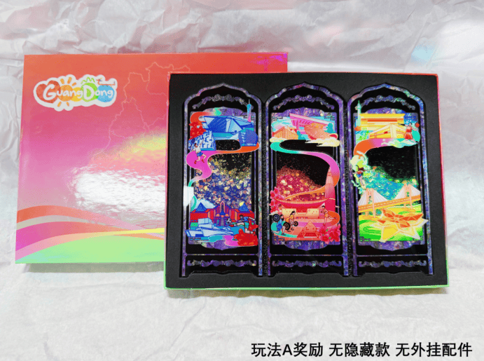 三是奖品设置“有惊喜”。本期活动创新推出“四象流麻”系列多功能文创奖品,以磁吸摆件、流沙台历、屏风挂饰等多元形态呈现,每套奖品深度融合了15家打卡单位文旅元素与十五运会、“粤BA”“粤超”赛事特色,运用“螺钿、贴金、掐丝”等非遗工艺打造了9枚高颜值单品,彰显了广货好物“实用与美学兼具”的独特魅力。