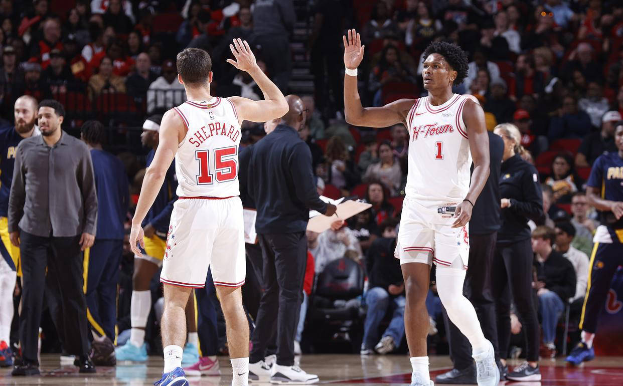 火箭内线由小贾巴里·史密斯和阿尔佩伦·申京组成,这对搭档已是球队成熟稳健的核心组合。尽管缺少杜兰特,这套阵容依旧兼顾攻守平衡。谢泼德虽在稳定得分方面不及杜兰特,但他的果断远投和干拔三分成了火箭外线的重要火力点。奥科吉同样具备可靠的三分能力和扎实防守,为球队提供坚实保障。