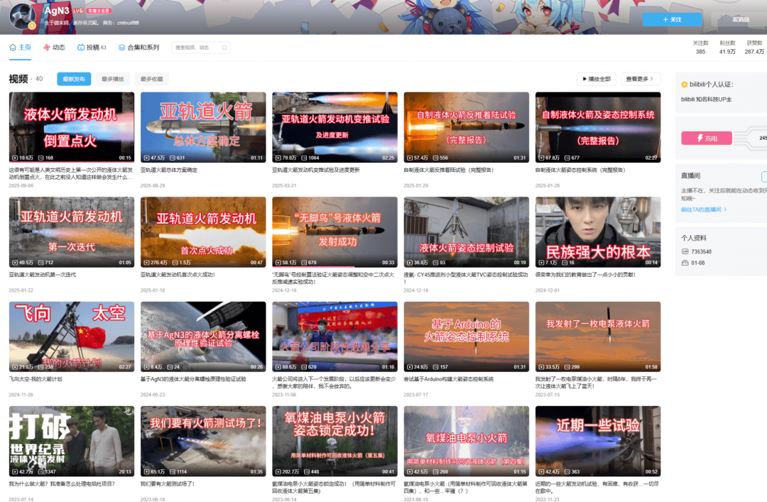 在各大社交平台上,卢驭龙运营的账号“AgN3”持续发布“手搓火箭”系列视频,完整记录下团队从制造零部件到测试液体发动机的关键过程。这些硬核的科研内容收获了大量网友点赞,不少人因此称他为“中国版马斯克”。