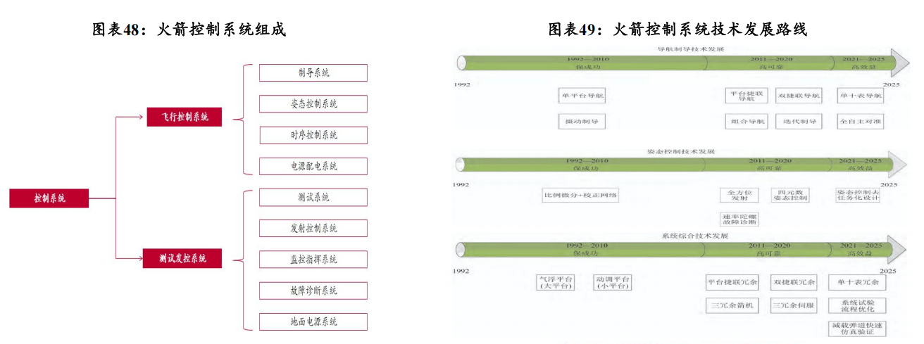 从整箭制造成本看,控制系统约占8%-15%,电气系统约占5%-10%,低于火箭发动机(30%-50%)和箭体结构(15%-25%)。火箭的控制系统与电气系统虽然价值占比不及发动机与结构件,但控制系统技术集成度极高,是保障精准入轨、实现VTVL回收与自动化发射的关键分系统。