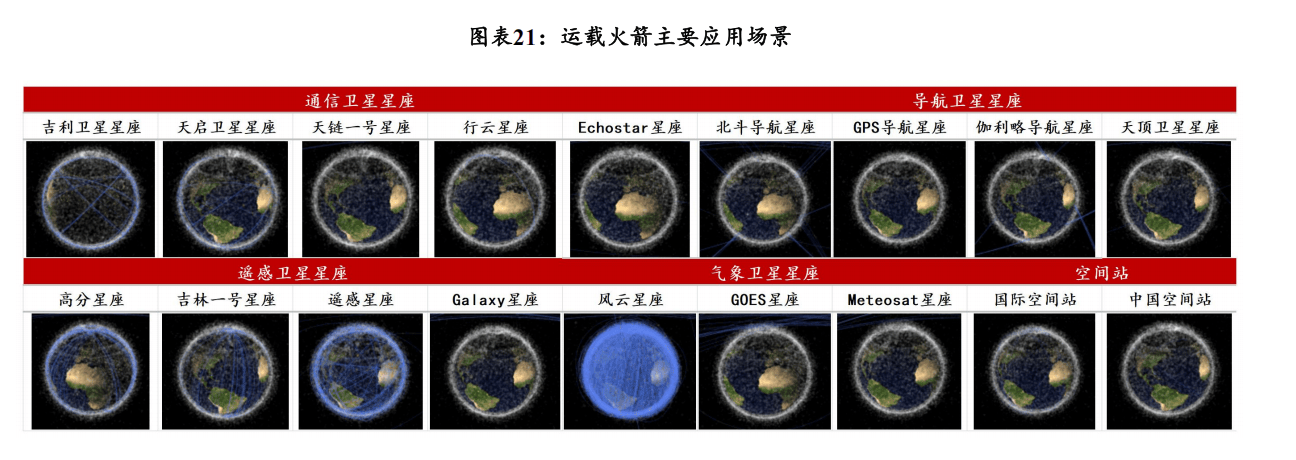 运载火箭作为航天器进入太空的主要运输工具,具有多元化应用场景。根据具体载荷情况,火箭发射服务应用场景可划分为:1)卫星发射;2)空间站建设;3)探月和探火等深空探测;4)太空旅游;5)太空资源开发。