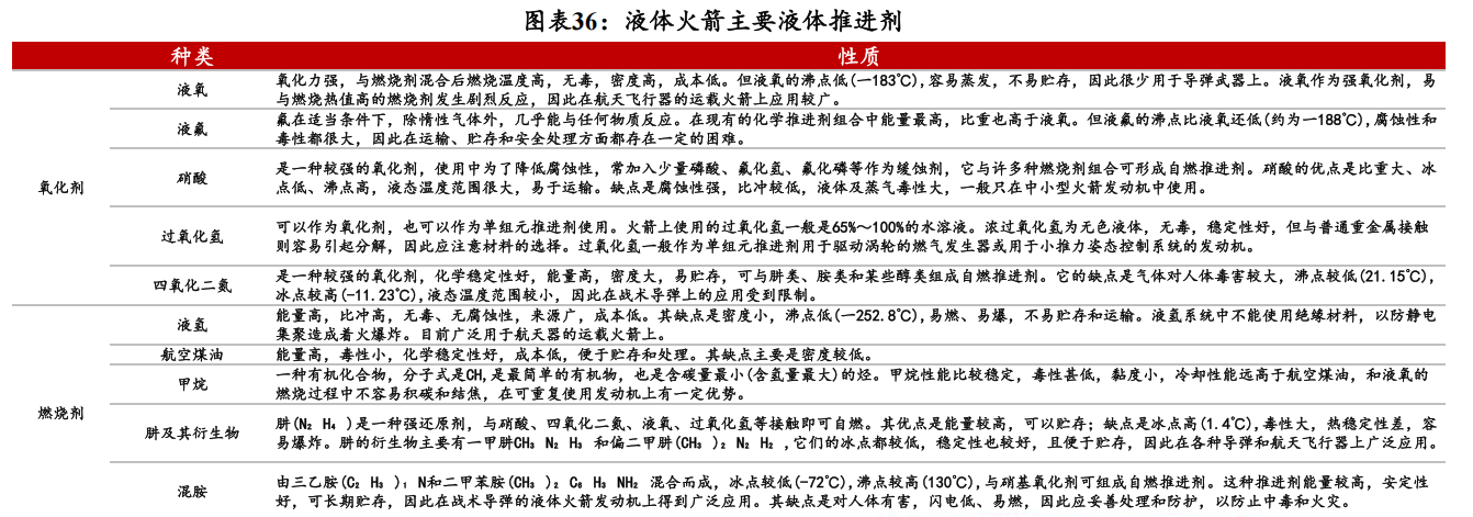 液体火箭发动机采用的液体推进剂类型通常以双组元组合为主,即氧化剂与燃料分别以液态形式独立存储和加注,在发动机燃烧室内混合反应产生推力。