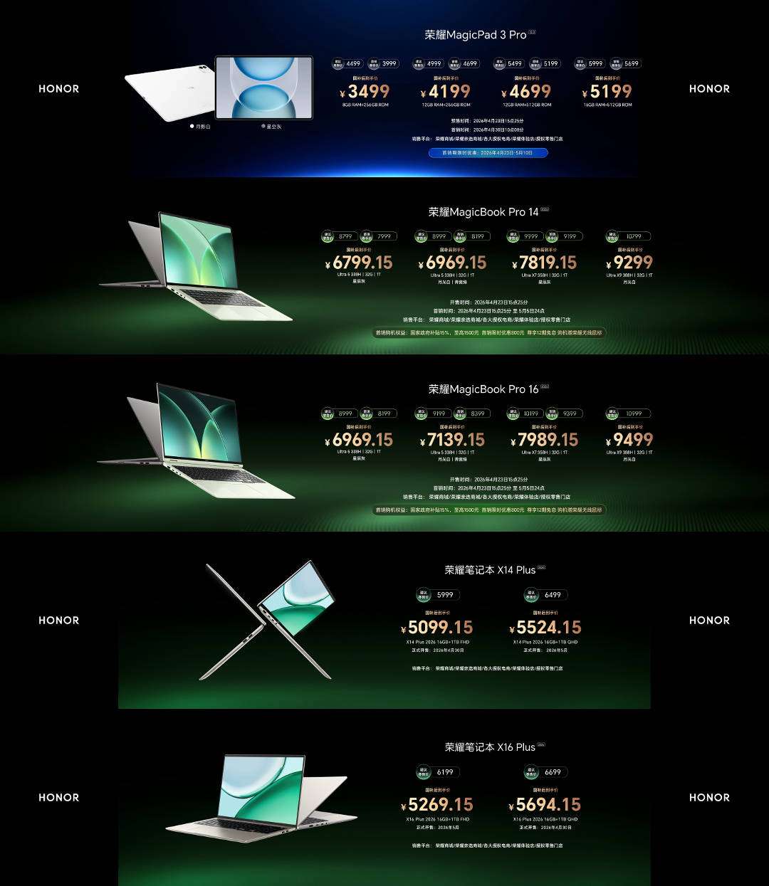 今天是2026年4月23日,数码圈最大的新闻莫过于荣耀端上了一大堆新品,游戏本、轻薄本、平板要啥有啥;然后谷歌提前爆料苹果Siri要换上他家Gemini的脑子了!除此之外,国产手机厂商终于受不了APP乱占内存了,联手搞了个“公平运行内存”机制。咱们下面一条条盘。