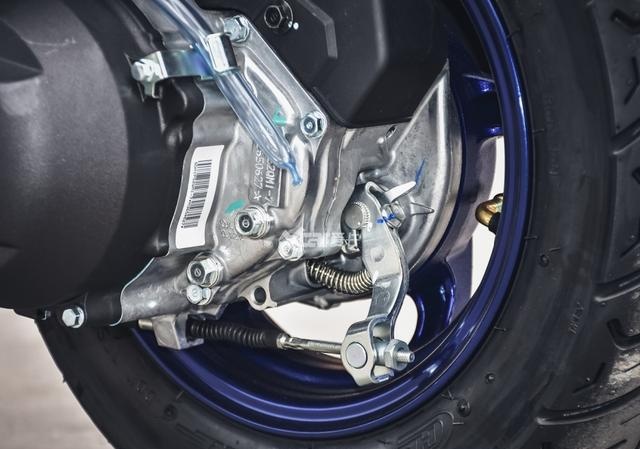 2021款裂行针对前后减震系统进行了重新调整,以适应轮组规格改变后的行使需求,但依旧是前正叉与后单侧单筒减震的组合,这也是本田小排量踏板车的惯用搭配方式。