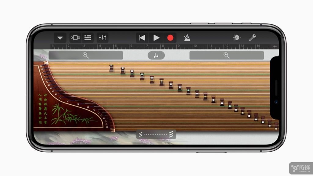 GarageBand 用户还可以尝试新的触控乐器,探索亚洲音乐风格,其中包括传统的日本筝与太鼓,以及中国古筝。使用 Multi-Touch 手势拨弦与按弦,或打击每种鼓的不同部位,即可轻松作出生动精彩的乐器演奏。
