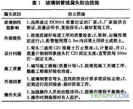 玻璃钢管施工直接影响使用寿命。施工质量主要表现在埋深达不到设计,跨越公路、排水渠等不穿保护套管,套管内不按规范加扶正器、止推座、固定支座、减工减料等,这些都是造成玻璃钢管漏失的原因。
