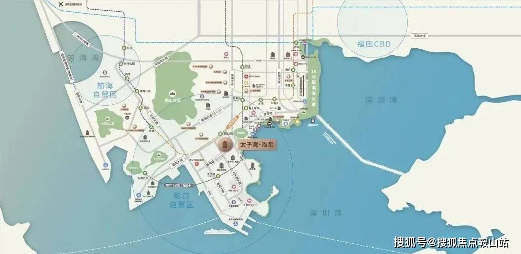 鼎级配套:约170万平方米的未来之城(包括约61万平方米的商务集群,其中含有380米高的超高层商务总部;约46万平方米的滨海商业区,涵盖K11亚洲旗舰购物中心、D-park等;约39万平方米的国际滨海社区;6万平方米的文化艺术中心;约8万平方米的五星级酒店;以及约4.5万平方米的太子湾国际学校和国际医院),形成了一湾三坊的城市综合体,引领滨海生活新时代。
