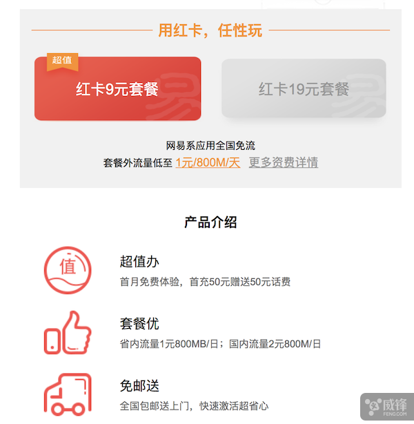 19元套餐与9元套餐的区别是,19元的套餐包含国内流量1GB和国内语音100分钟,9元的套餐则没有。当前办理“网易红卡”的用户还有一系列的优惠活动,比如入网首月免月租,并赠送10元线GB全国通用流量;激活后,通过“网易红卡”公众号首充50元赠50元。