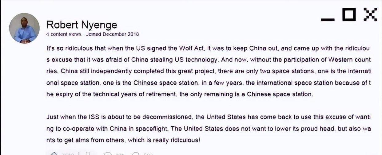 标准与语言也是话题的一部分。有人揶揄:当年有人嫌中文不是“标准”,等到天宫常驻运行,标准便“随现实调整”了。更现实的,是程序语言以外的政治语言——美国机构要与中国科研团队哪怕共享一份轨道预报,都可能走上国会审批与FBI审查的漫长之路;反过来,如果美国航天员有意登上中国空间站,则会遭遇本国法律障碍。芝加哥法学院那位博士生的评论捕捉到要害:国际法不拦你,美国法会拦你。门不是在轨道上,而在你自己的办公室里。
