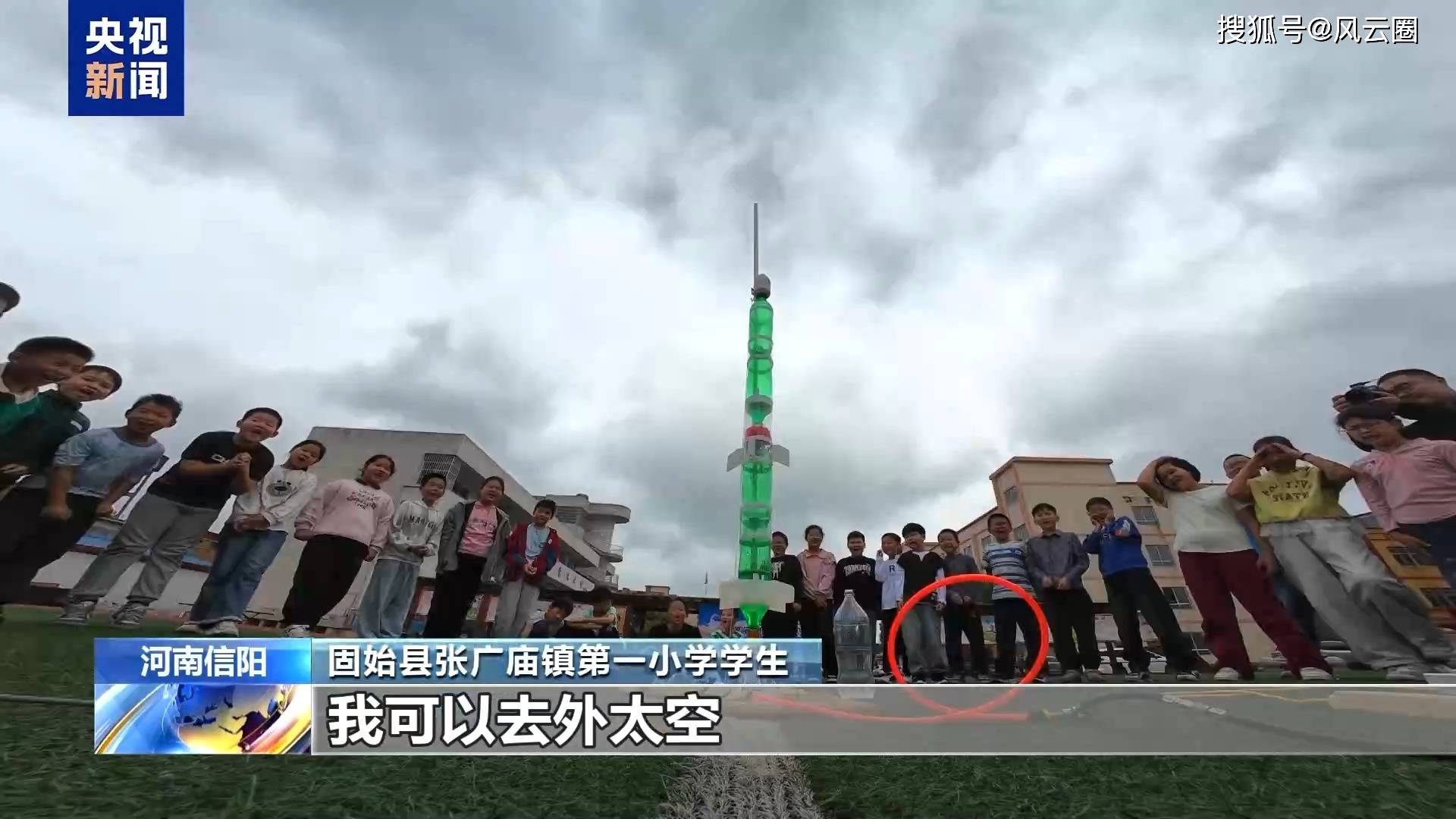 在河南信阳的一个乡村小学里,这里的孩子们和老师们花了5奶奶的时间,学着神舟飞船冲破寰宇的样子,让一个个普通的饮料瓶,能变成冲向天空的“火箭”。他们学着航天员叔叔的样子,实现了自己的“航天梦”。