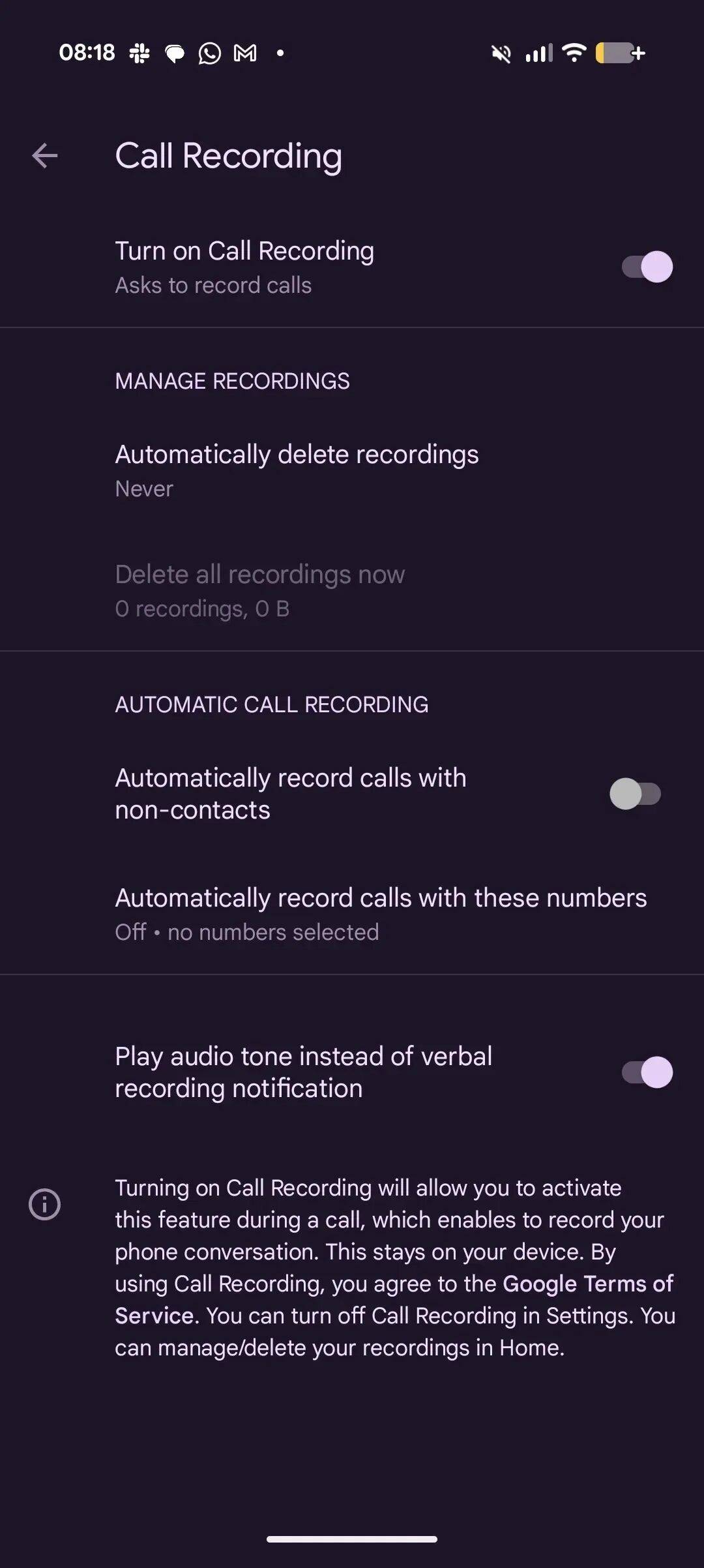Google 表示,首次启用时应用会提示录音处理方式,并在通话开始录音时自动播放提示音或公告,以满足不同地区的法律合规要求。
