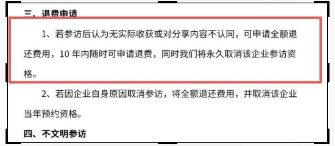 胖东来发布了关于“胖东来开放日”的实施细则,其中提到,若企业参访后认为无实际收获或对分享内容不认可,可申请全额退还费用,并且10年内随时可申请退费,胖东来也将永久取消该企业参访资格。