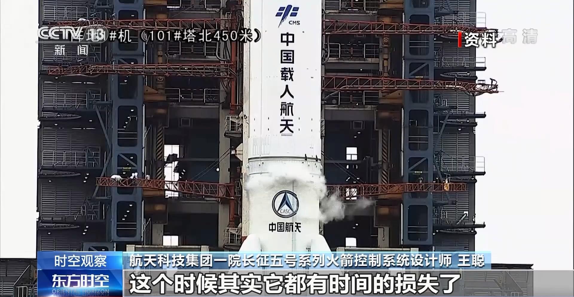 航天科技集团一院长征五号系列火箭控制统设计师 王聪:上一发(长五B)遥二的时候,我们的送氢的管子它冻住了,不脱落,瞬间没有脱落,我们就再发脱的指令,再尝试脱落,于是它又脱下来了,这个时候其实它都有时间的损失了。