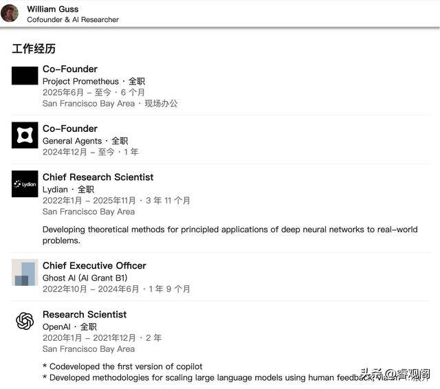 员工阵容更是豪华到离谱,领英上的公开资料,发现100多名员工里,有20多个来自OpenAI、谷歌DeepMind和Meta。比如前DeepMind资深研究员汤姆·卡特,领英上更新的职位是“Project Prometheus高级工程师”,他之前主导过DeepMind的机器人行为训练项目。还有OpenAI的前产品经理萨拉·李,现在负责Ace的商业化落地,她的领英备注里写着“专注多模态Agent场景拓展”。