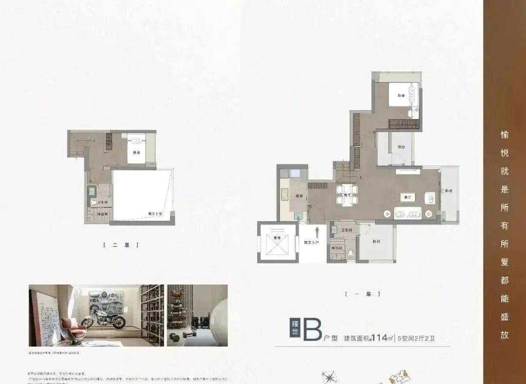 114㎡复式户型看上去就实用很多小火箭无法识别链接文件,因为项目是2018年报建的,那时还没禁复式令,所以耀胜尊府这个是真复式,得房率非常高。