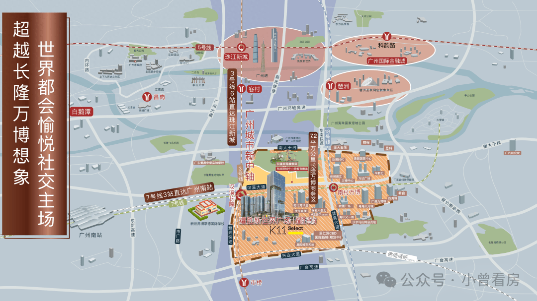 住宅——从珠江新城凯旋新世界“广粤尊府”,至长隆万博 “耀胜尊府” 载誉而来,2025年5月30日入住,与K11 Select 商业开业同步商业——广州第二座K11 Select购物艺术中心写字楼——对标东塔的LEED金级标准写字楼,再做城市标杆。