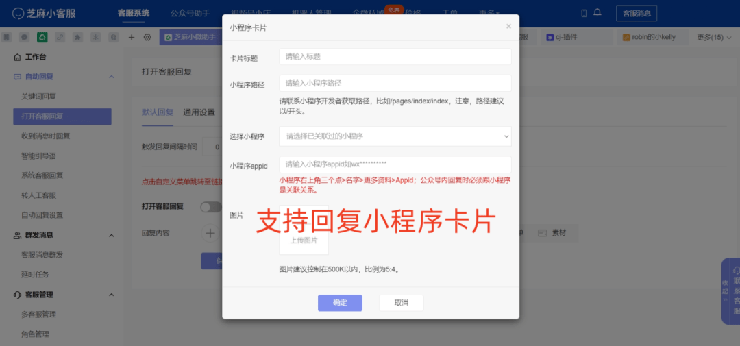 运营者配置小程序后,如用户打开客服系统对话,只需要根据醒目的提示点击卡片,即可触发自动回复。