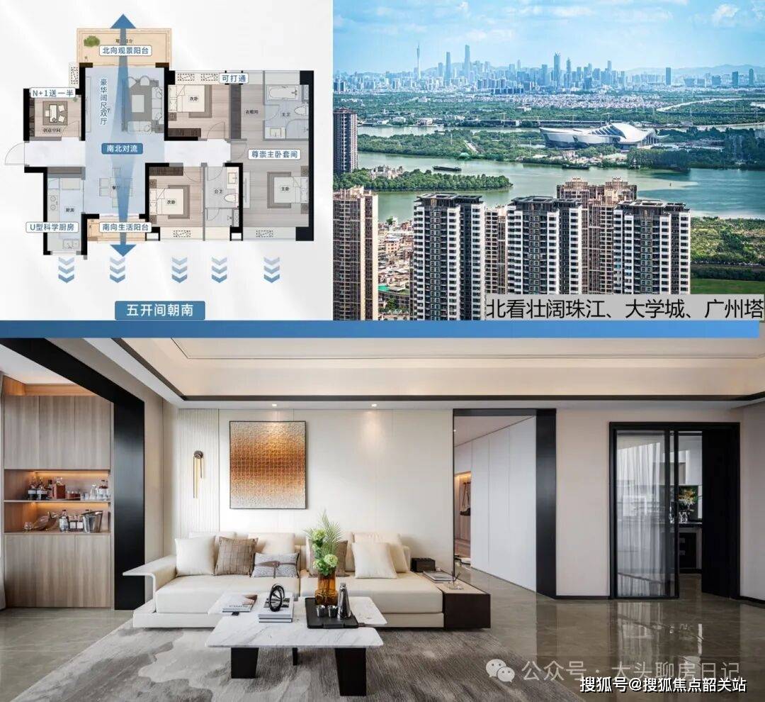 南北双阳台 · 5开间朝南 · 高赠送 · 超大主套 · 百变空间 · 大厨房;南望万博,北看珠江、大学城、广州塔。
