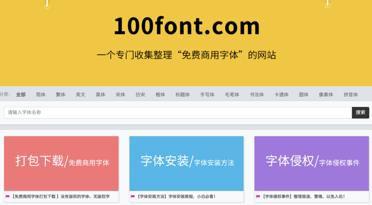 基本上不用注册登录,就可以下载到各种高质量的免费商用字体,每一个标注着“Free Font”字眼的都是能够免费商用的。