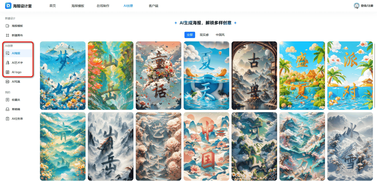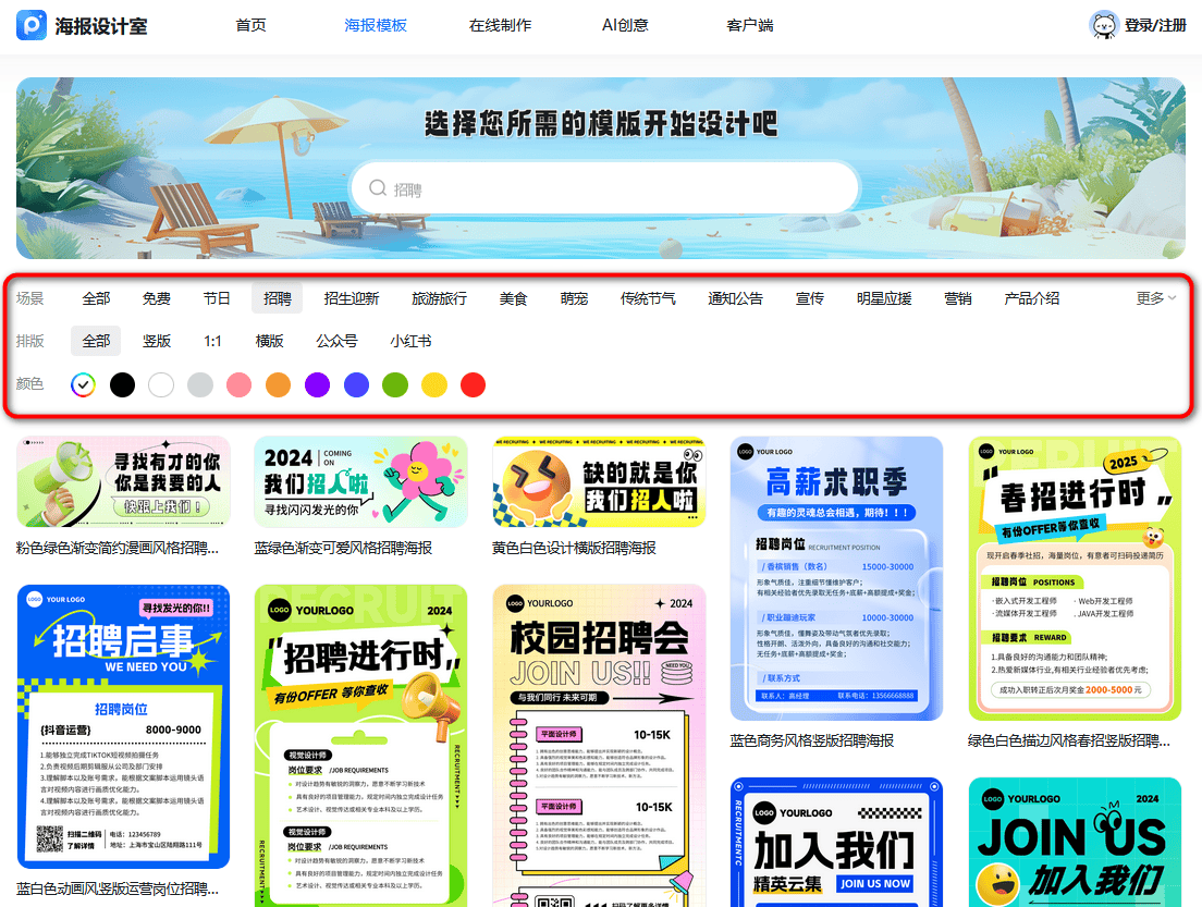 网站一打开里面就可以一眼看到各式各样的优质海报模板,生日、节日、活动、广告、节气不同用途的选择有很多。