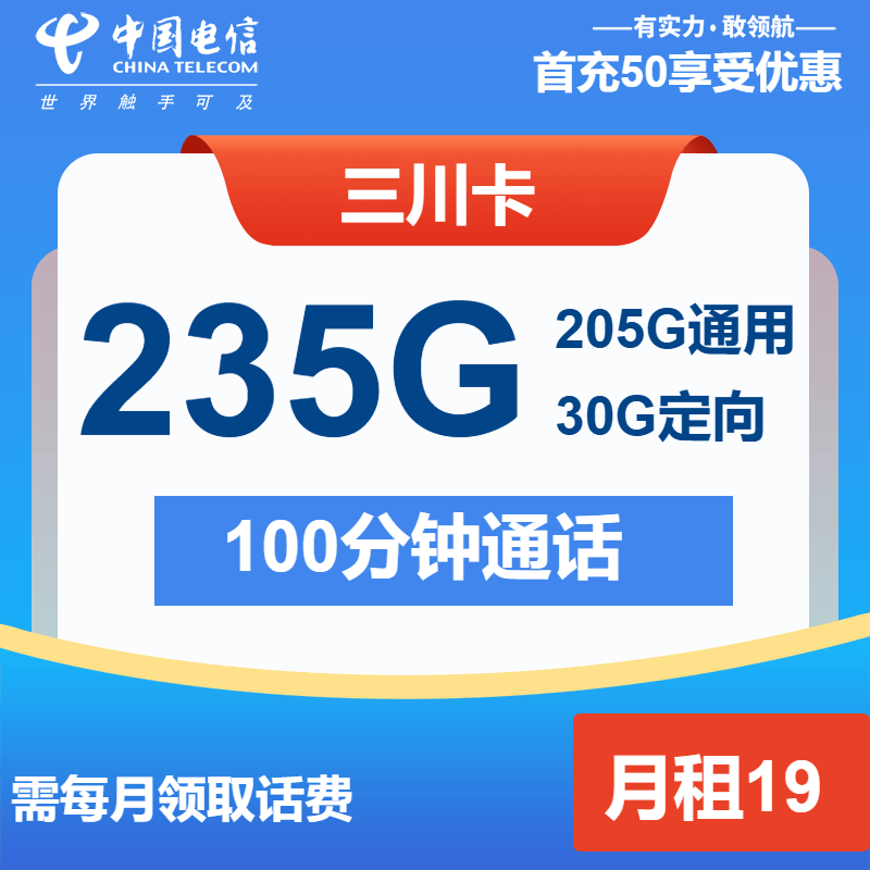 :155GB通用流量+30GB定向流量(覆盖抖音、腾讯视频等)+100分钟通话,自主激活,首月免费。实测流量用不完还能结转次月,适合日常刷剧、社交。