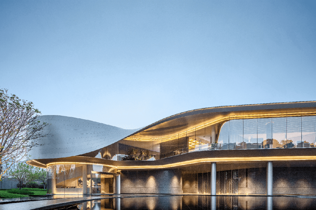 在建筑规划上,项目选用了抬高设计和创新蝶式楼型,北地块整体抬高约11.2米(含地块抬高约5.2米+架空层约6米)。这种设计让社区内外有别,业主私密性更强,同时使住宅起始层相当于别人的4楼,不仅视野开阔,通风采光也更为优越。立面整体风格现代简洁、端庄典雅,选用低饱和度色彩和温润自然的材质,以大面玻璃为底,突出水平线条的疏展,结合岭南广府元素的现代演绎,尽显细节品质。全新润心底盘2.0,以润心桥、珠水门庭、院落大堂为归家动线,敬献庭院式归家意境。