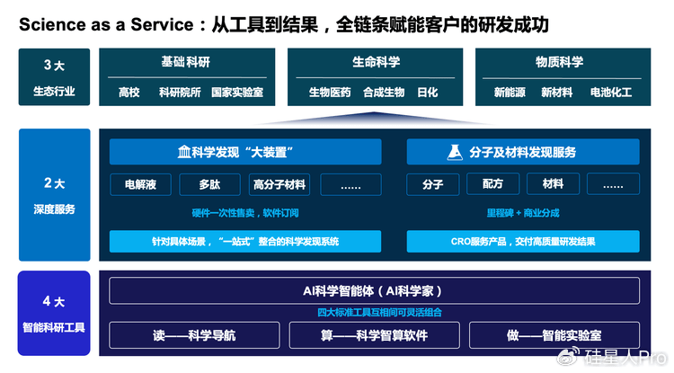 在2025年AI for Science(AI4S)的赛道上,我们观察到一个显著的战略分化。绝大多数公司选择的是“做深”。它们或专注于攻克蛋白质折叠的单一难题,或深耕某一种特定新材料的生成。这种“小而美”的垂直路径固然能带来单点突破,却极易陷入无法通用化和规模化的泥潭,最终沦为大型药企或化工巨头的技术外包商。