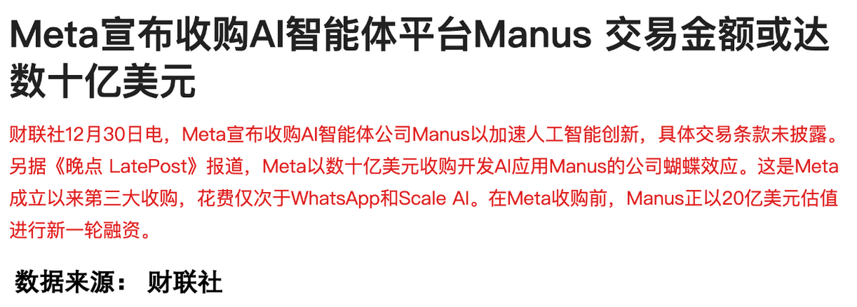 Meta这两年在AI上可是「下血本」:之前花148亿收了Scale AI,还从苹果、OpenAI挖了一堆顶尖人才,这次收Manus,明显是想把「通用AI Agent」的技术,用到自己的平台上——毕竟Meta有几十亿用户和几百万企业客户,要是能把Manus的能力整合进去,说不定能让AI从「实验室」真正走到「用户手里」。不过效果咋样?还得看后续产品能不能接住这么大的流量。