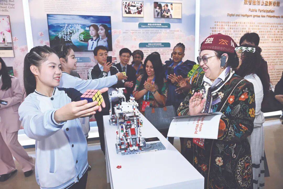 公益参与展区以“数智激活公益新动能”为主题,突出展示全国妇联所属中国儿童少年基金会、中国妇女发展基金会以数字化智能化促进妇女儿童公益事业发展的有益探索。“春蕾科技女孩”“AI豆计划”等一个个成功案例,让观众直观感受数智赋能的温度与力量,借助公益的触角深入大山、走进乡村,影响和改变了无数妇女和女童的今天和未来。