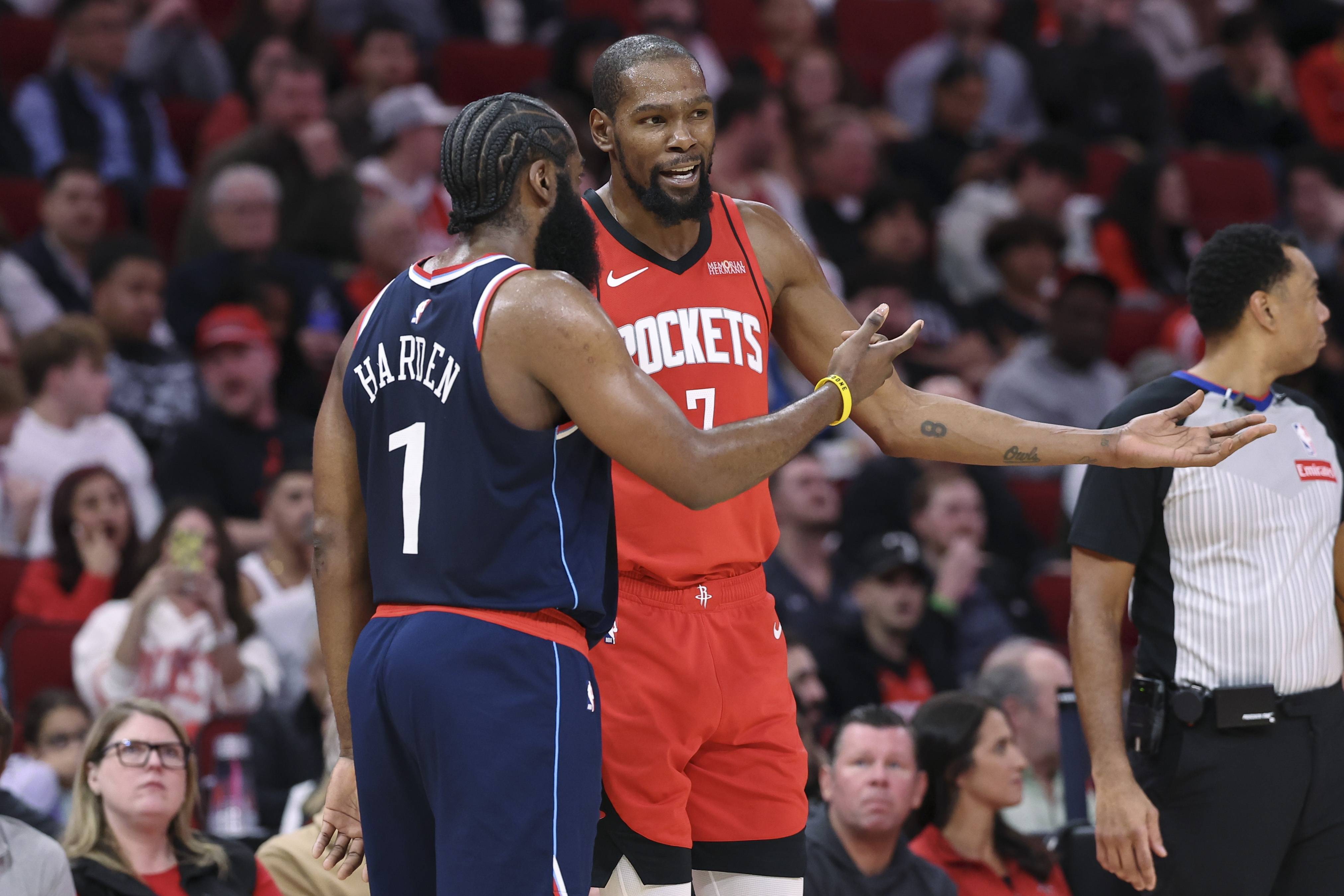 哈登挡拆点名海王,火箭不得不无限包夹哈登,大洛和邓恩被直接放空。并且哈登单打还能欺负霍勒迪和谢泼德,火箭替补1、2、5号位的防守都有局限性。
