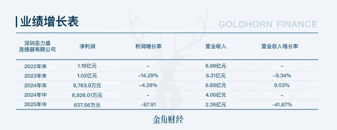 根据自媒体“碧湾”的整理,2025年上半年,深圳亚力盛净利润只有837.56万元,同比暴跌接近90%;而2024年上半年,它的净利润还接近7000万元。再往前看,2022-2023年,亚力盛年度净利润都维持在亿元级别。