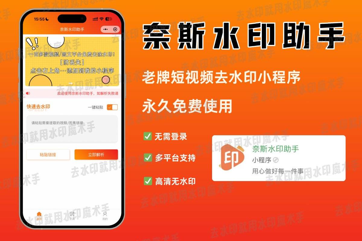 使用大佬去水印非常方便,无需下载APP,在微信上搜索就能使用,它占用的空间仅2.5MB,即使是低配设备也能流畅运行。操作也很简单,只需要3步:复制链接→粘贴解析→保存,新手10秒就能上手。它还兼容iOS/Android/鸿蒙三端,并且每月都会定期更新优化,让你始终能享受到最好的服务。