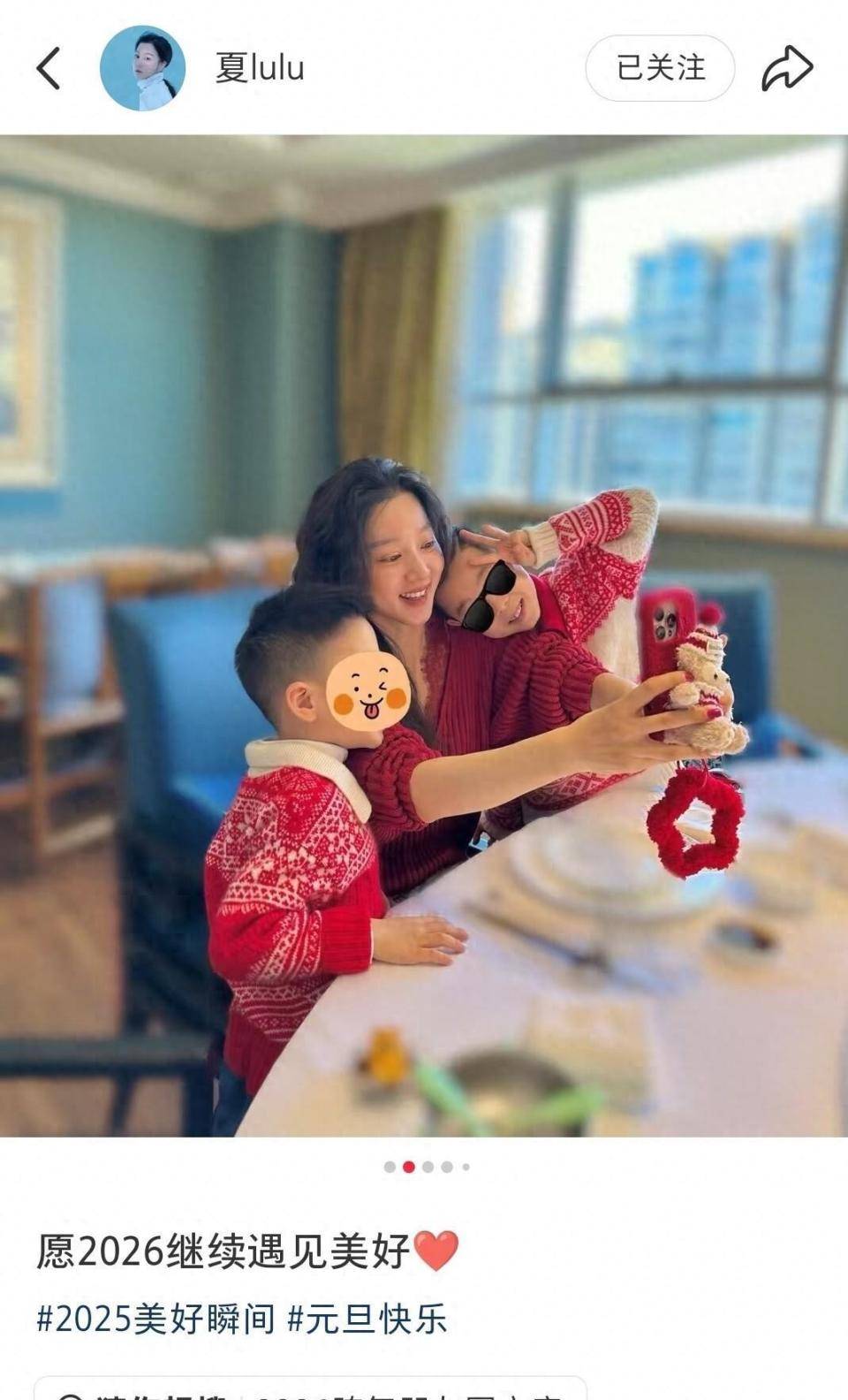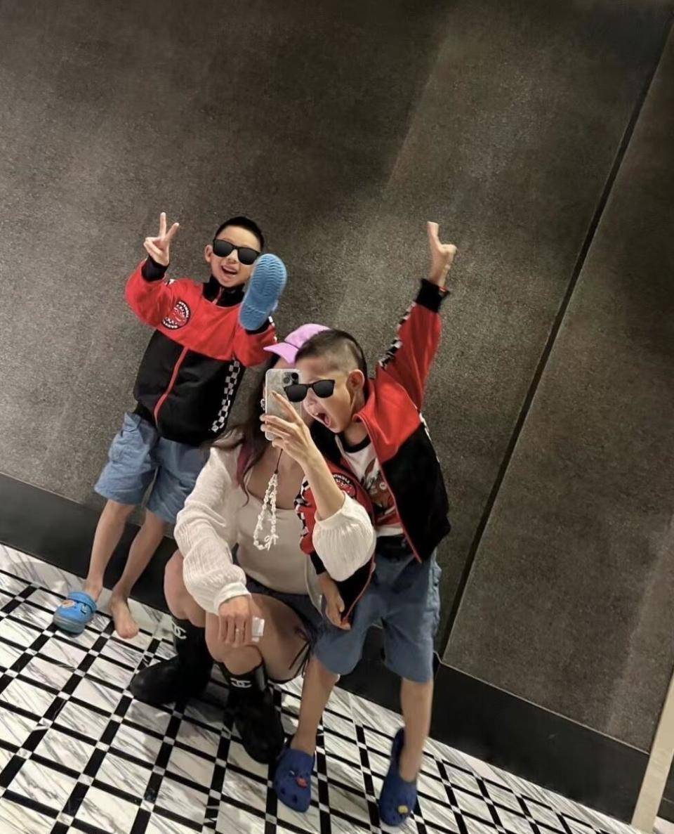 作为两个孩子的母亲,夏露的带娃日常充满了仪式感和温馨。在香港瑰丽大酒店度假时,母子三人身穿红色系的亲子装,对着镜头搞怪地比心。小儿子马里奥玩得兴高采烈,一只鞋穿在脚上,另一只则紧紧地攥在手里,童真可爱。