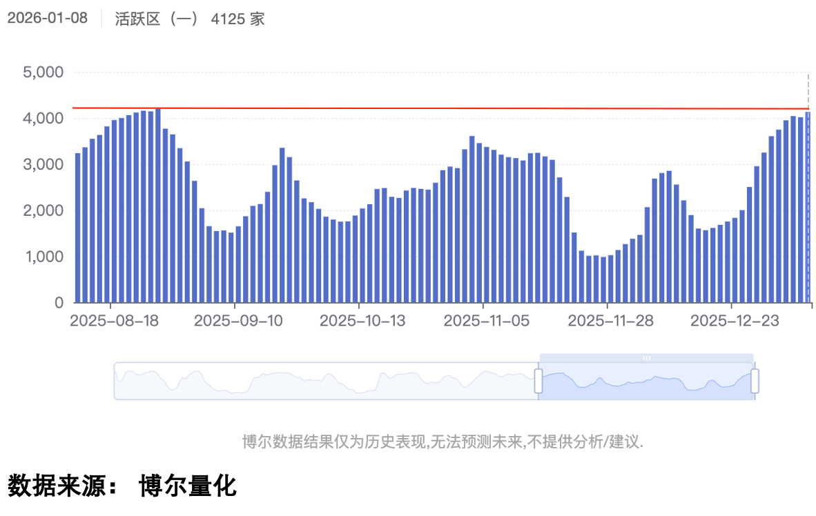 虽然今天指数表现有点拖沓,但是个股的表现还是很好的,但我们说过昨天短线资金明显有「回吐」迹象,那为何今天个股表现反而更好呢?因为机构大资金发力了,今天进入到「(机构)活跃区」的个股数量创了阶段新高,而上一次达到这个水平还是在去年的8月份,所以很明显,趁着大家的各种犹豫,机构全面接手筹码。