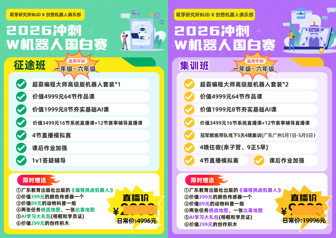 直播间报名通道已开启,我也邀请了创想团队负责人赵老师,以及广东省机器人协会副秘书长龙玉琼老师来和大家深度解读26-28年AI机器人教育的新趋势,还有大家最关心的国家白名单赛事动态,直播间还有惊喜抽奖!