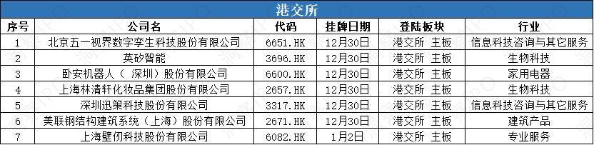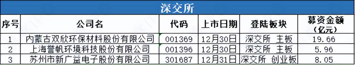 2025年12月30日-2026年1月5日,上交所科创板有1家公司上市;深交所主板有2家公司上市,创业板有1家公司上市。